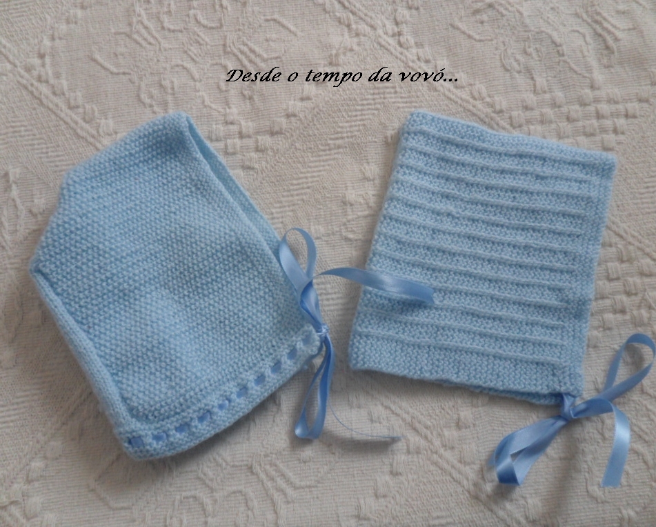 Para combinar com os sapatinhos que mostrei no último post fiz também os gorros em tricô, usando o mesmo material: fio Super Bebê da Cisne e agulhas de tricô número 3.