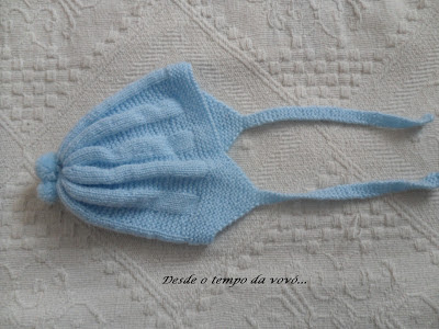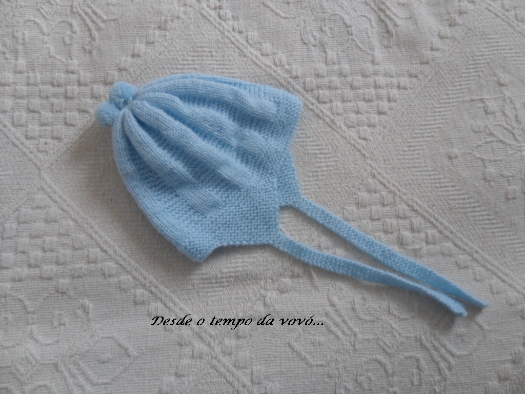 Acabamento : costurar o fundo da touca nas extremidades e pregar as fitas.
